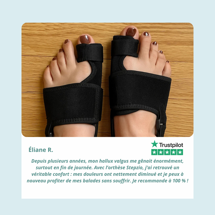 C’est pourquoi l’orthèse Stepzio™ a été développée en collaboration avec des professionnels de santé spécialisés dans le pied, afin d’offrir une solution simple, efficace et accessible contre les douleurs liées à l’hallux valgus.